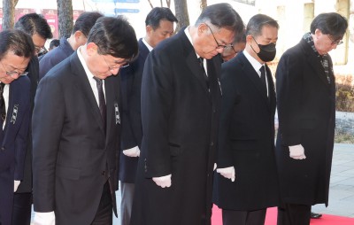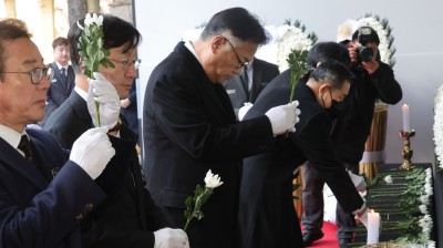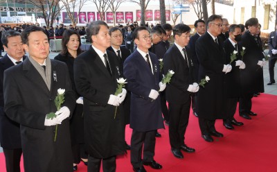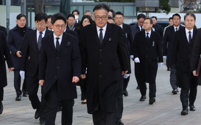 서울시청 합동분향소 찾은 정진석 대통령 비서실장과 참모들
