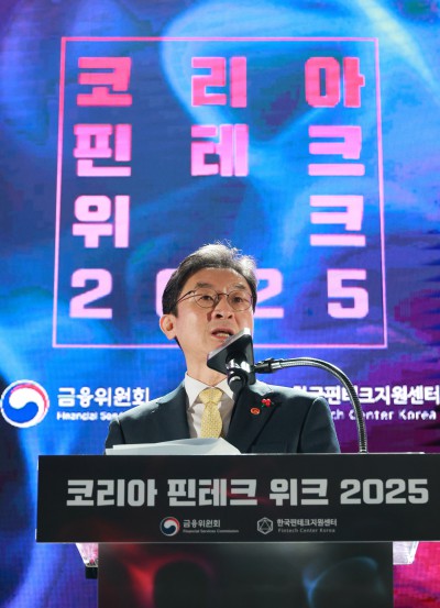 코리아 핀테크 위크 2025, 환영사하는 이억원 금융위원장