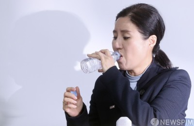 [사진] 물 마시는 박소연 케어 대표... '착잡한 마음'
