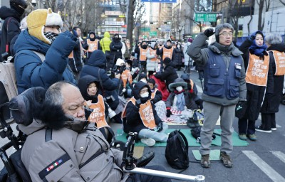 혹한속 개최된 오세훈 서울시장 장애인권리약탈 STOP! 촉구 결의대회