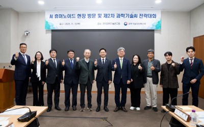 AI 휴머노이드 'KAPEX'와 기념촬영하는 배경훈 부총리