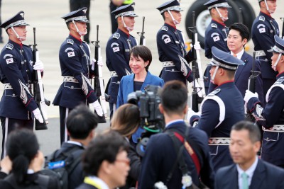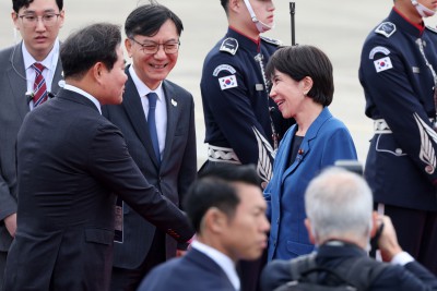다카이치, 김해공항 도착...오늘 李대통령과 첫 정상회담