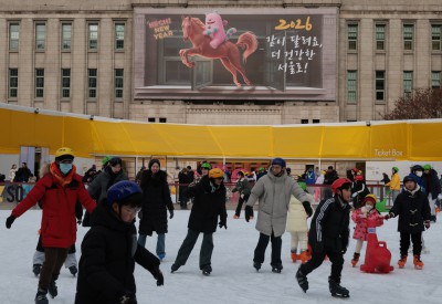[포토] 새해 첫 일요일, 울진 왕피천공원 빙상장 '초만원'