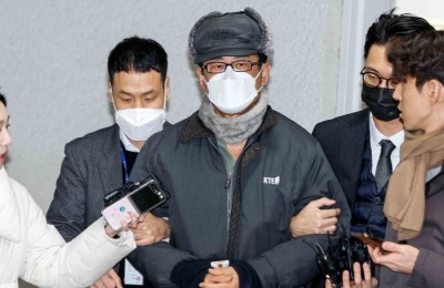 반도체 기술유출 사건 수사결과 발표 위해 이동하는 김윤용 부장검사