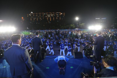이재명 더불어민주당 대선 후보, 마지막 유세장 찾은 지지자 향한 큰절