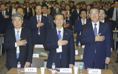 [사진] 국민의례하는 '윤종원 경제수석,정성호 위원장,김태영 회장'