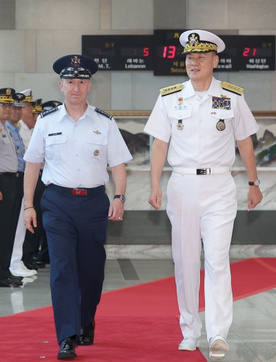의장대 사열받는 이영수 공군참모총장과 UAE 공군방공사령관