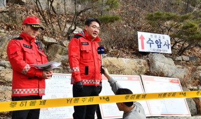 '혹한·강풍' 속 '의성산불' 야간 잔불정리하는 경북소방 산불진화대