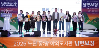 '2025 노원 북페스티벌' 도서관 유공자와 기념촬영하는 오승록 노원구청장