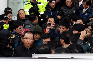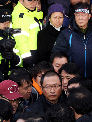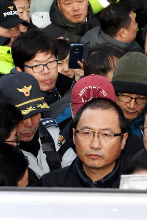 [뉴스핌 포토] 김명환 위원장 등 철도노조 지도부, 경찰서 자진 출두