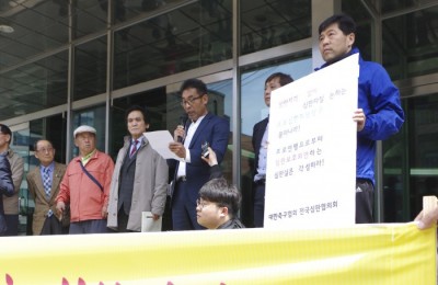 [사진] 대한축구협회 앞에서 구호외치는 대한축구협회 전국심판협의회