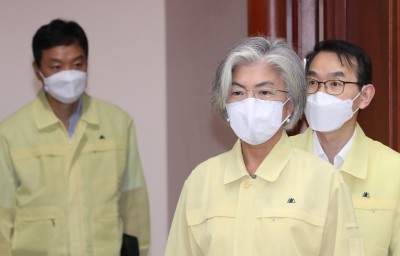 코로나19 대응 중대본 회의 참석한 강경화 외교부 장관