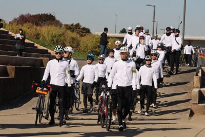 취타대와 함께 입장하는 자전거 신(新)조선통신사 대원들