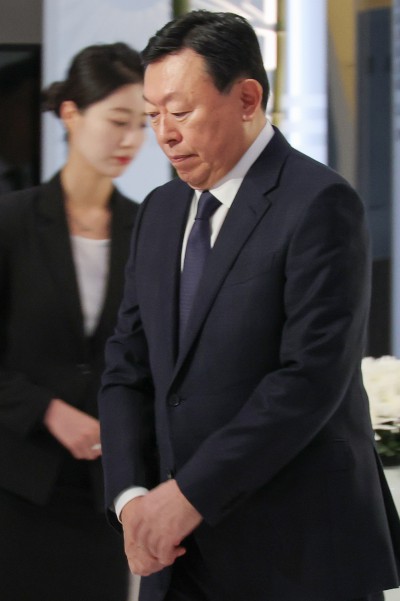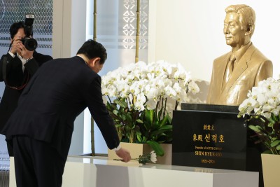 고(故) 신격호 명예회장 6주기 추모식 헌화 마친 신유열 롯데그룹 부사장