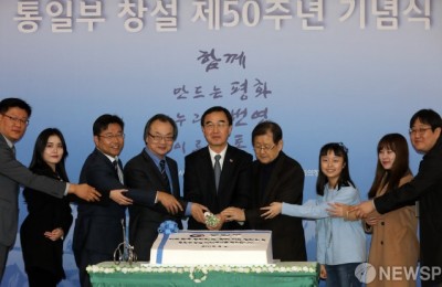 [사진] 통일부 창설 50주년 기념식 참석한 조명균 장관