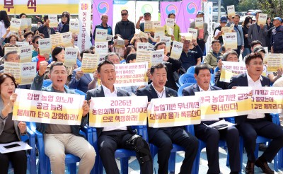 ‘농업생산비 절감과 물가안정’ 촉구하는 궐기식 진행한 이충우 여주시장과 농업인들