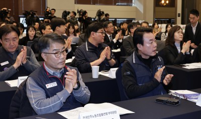 박수치는 '실노동시간 단축 로드맵 추진단 대국민 보고회' 참석자들