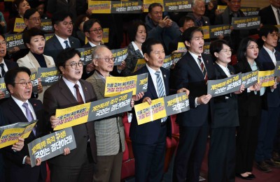 [영상] 與 "마스크에 구호 적은 건 좀" 野 "피켓에서 대폭 양보한 것"