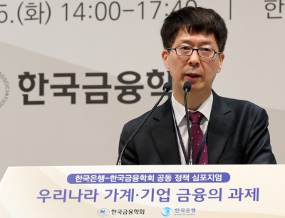 한국은행-한국금융학회 공동 정책 심포지엄 개회사하는 곽노선 금융학회장