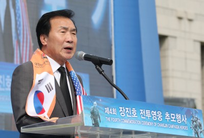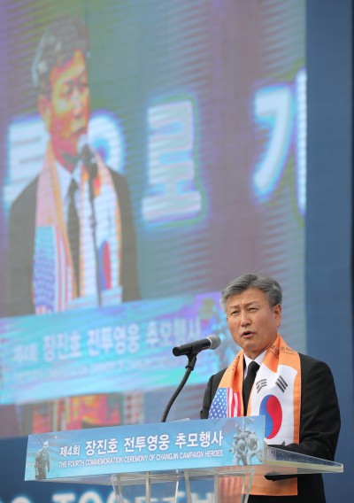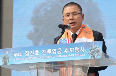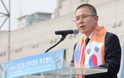 [사진] 황교안, '대한민국이 장진호 전투를 기억하겠습니다'