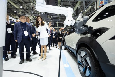 수소 전시회 부스 둘러보는 김성환 기후에너지환경부 장관