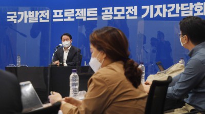 최태원 회장, '국가발전 프로젝트 공모전 관련 기자간담회'