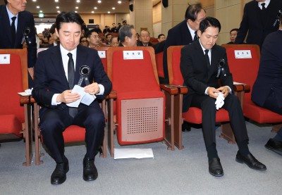 고(故) 김영삼 전 대통령 서거 10주기 추모식 참석한 강훈식-장동혁