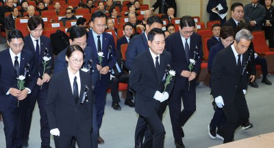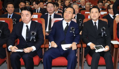 고(故) 김영삼 전 대통령 서거 10주기 추모식 참석한 강훈식-주호영-장동혁-윤호중