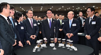 과학기술인·정보방송통신인 신년인사회 건배하는 김민석 총리