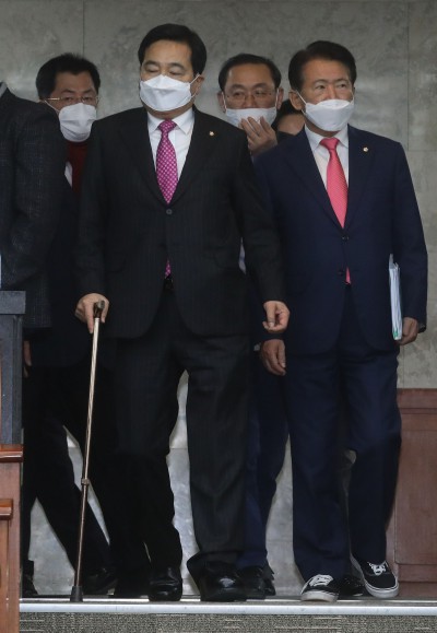 원내대책회의 참석하는 심재철 원내대표-김한표 원내수석부대표