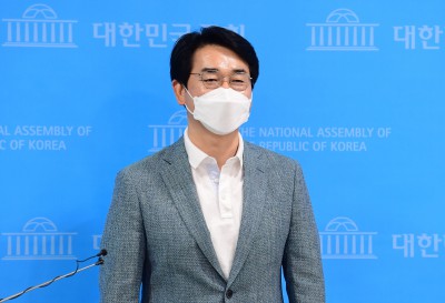 취재진 질문에 답하는 더불어민주당 대선주자 박용진 의원