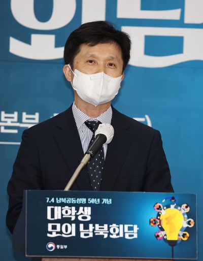 '7.4 남북공동성명 50년 기념' 인사말하는 이상민 남북회담본부장
