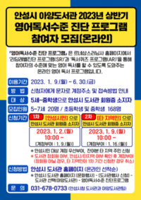안성시 아양도서관, 영어독서수준 온라인 진단 참여자 모집