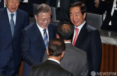[사진] 인사 나누는 문재인 대통령-김성태 원내대표