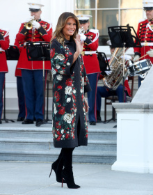 [사진] ‘세차장 회전걸레? 빨간옷 시녀?’ 멜라니아 빨간 트리 조롱 이어져