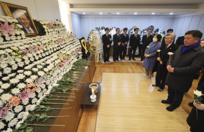 고(故) 이해찬 국무총리 빈소 헌화하는 유인태 전 국회사무총장