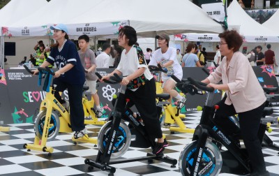 스피닝 즐기는 '2025 서울 익스트림 스포츠 페스티벌' 참가 시민들