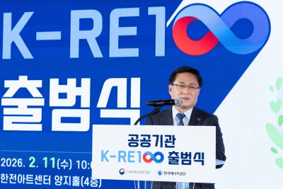 ‘공공기관 K-RE100 출범식’, 환영사하는 김성환 기후·에너지·환경부 장관
