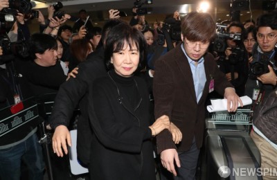 [사진] 빙상계 성폭력 관련 기자회견 마친 손혜원-여준형