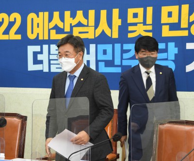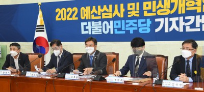 2022년 예산 심사 관련 기자간담회 여는 윤호중 더불어민주당 원내대표