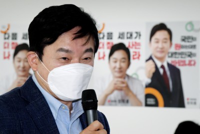 캠프 사무실에서 기자간담회 여는 원희룡 국민의힘 대선 예비후보