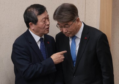 대화하는 박수근 중노위 위원장 - 김지형 경사노위 위원장