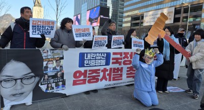 전국민중행동 회원들의 '국정농단 김건희 엄중처벌 촉구' 퍼포먼스