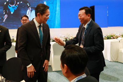 인사 나누는 이재용 삼성전자 회장 - 신동빈 롯데그룹 회장