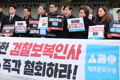 [영상] 검찰 보복 인사 규탄하는 새로운보수당 "법치수호 끝장투쟁"