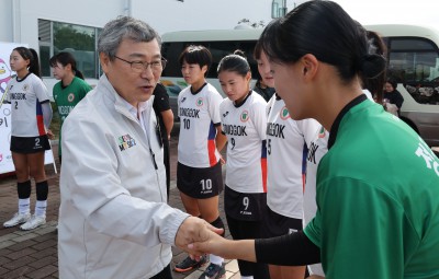 전국체전 출전 송곡여고 하키팀 훈련비 전달하는 정근식 서울시교육감