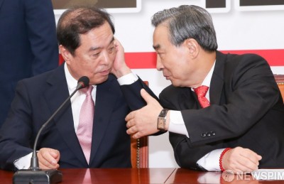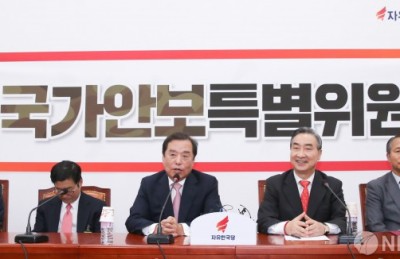 [사진] 대화 나누는 김병준-전옥현 국가안보특위 위원장