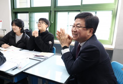 박수치는 최교진 교육부 장관... 중학교 헌법 수업 참관