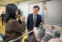 생필품 직접 전달하는 기획재정부 복권위원회 이용욱 사무처장과 행복공감봉사단 단장 박하선 배우