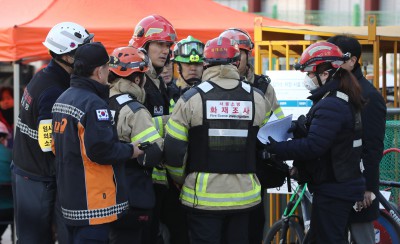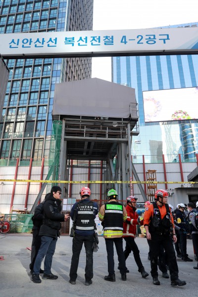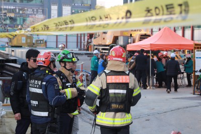 신안산선 복선전철 4-2 공구 사고 발생... 현장 수습하는 소방대원